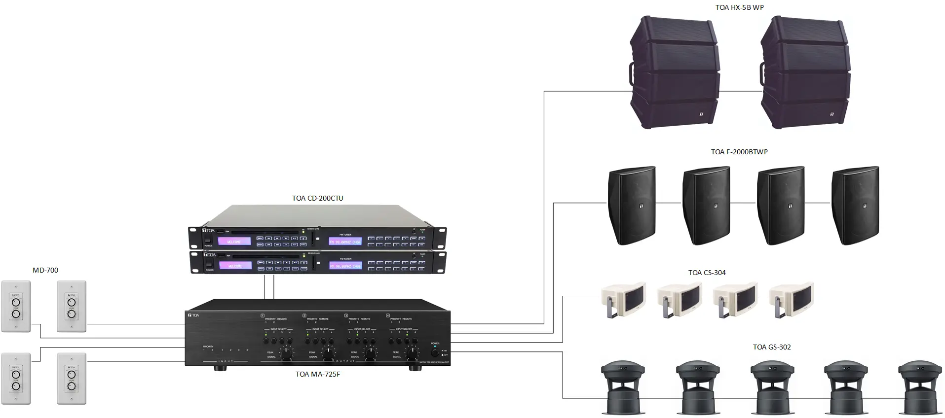 تجهیزات عبور سیگنال استیج دارای ورودی 56 کانالی و خروجی 20 کانالی با استفاده از میکسر Aspen لکترونیکس که همه ی آن ها بر روی شبکه دانته انجام شد. این ارتقا جدید این امکان را به ما می دهد که 56 کابل آنالوگ را از اتاق صدا بیرون بکشیم و آن ها را با تنها چهار کابل Cat-6، جایگزین کنیم. ما چندین استیج که شمال A/D  یا D/A را حذف کردیم و به طور چشم گیری تاخیر در همه ی سیستم ها را کاهش دادیم. نکته مثبت دیگر این هست که همه این کارهارا در سه روز انجام دادیم.