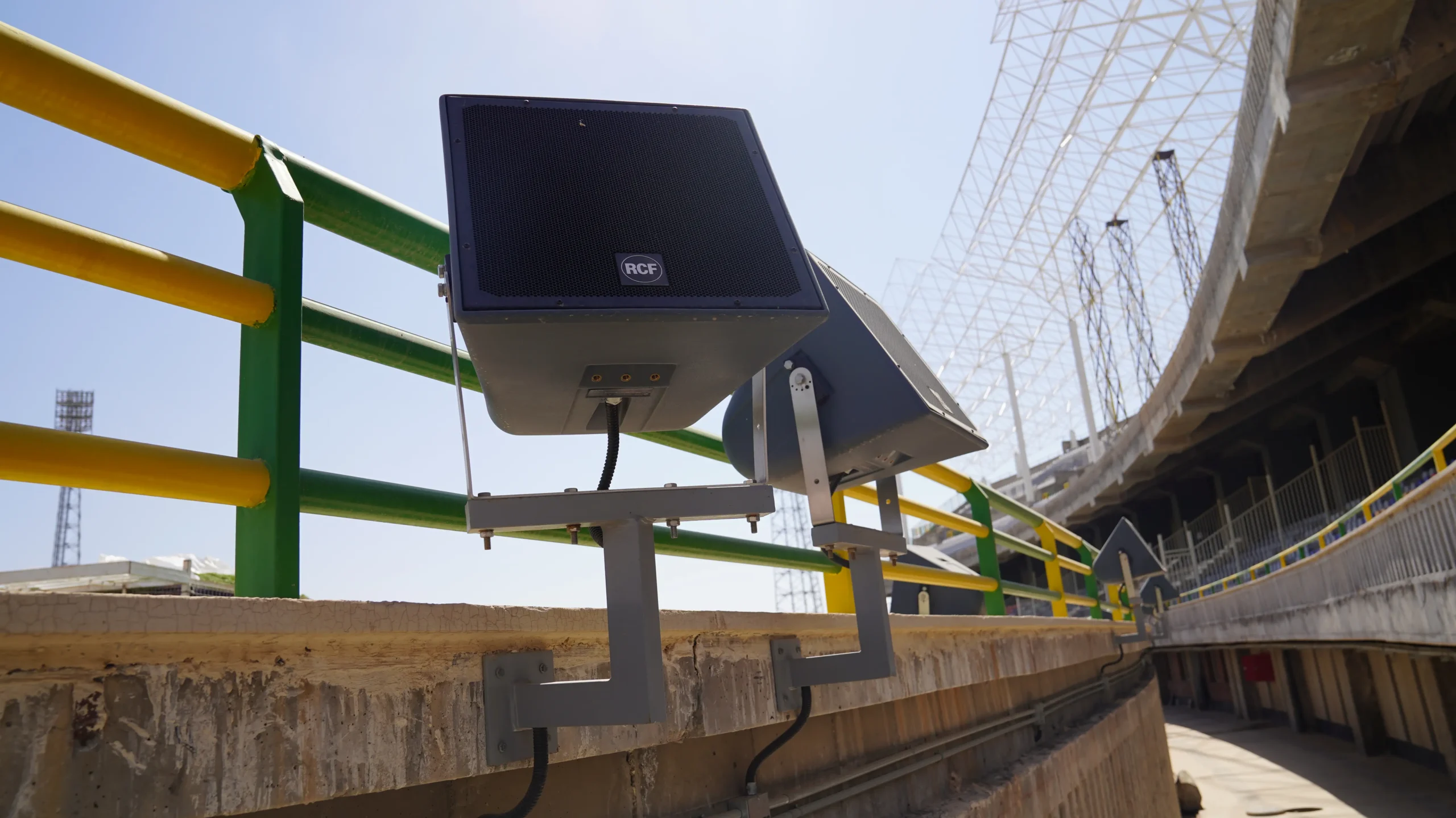 برای پخش واضح و قدرتمند صدا در فضاهای باز، از اسپیکرهای هورن برند ایتالیایی RCF مدل P6215 استفاده شده است. این اسپیکرها بهدلیل طراحی خاص و توان بالا(600 وات)، انتخابی ایدهآل برای ورزشگاهها و استادیومها هستند و پوشش یکنواخت صوتی را در تمامی نواحی سکوها و زمین فراهم میسازند. این بلندگو هورن دارای ووفر 15 اینچی با گواهی IP55 مناسب برای فضای بیرونی طراحی و ساخته شده است. حداکثر سطح صوت این اسپیکر هورن dB 136 می باشد.